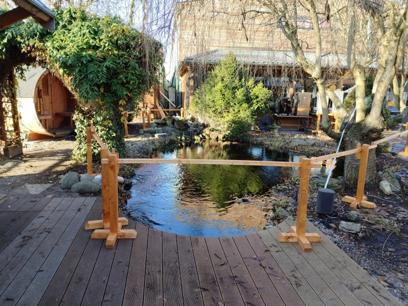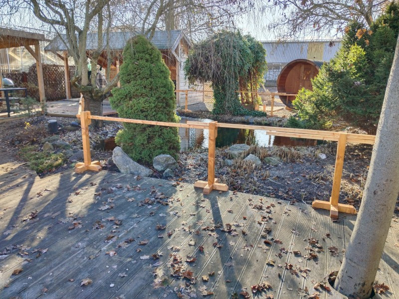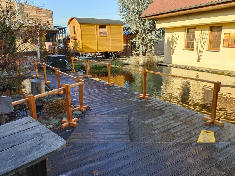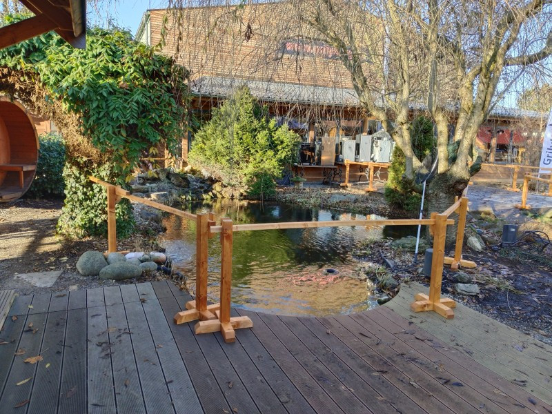 V areálu naší firmy proběhne o víkendu velká akce pro širokou veřejnost, a protože se u nás nachází několik jezírek s rybami, rozhodli jsme se prostor zabezpečit. Pro zajištění bezpečnosti dospělých i dětí jsme k jezírkům nainstalovali jednoduché, ale velmi pevné venkovní dřevěné zábradlí.