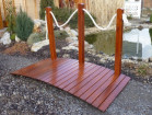 Ať už máte zahrádku japonskou nebo českou patří dřevěný můstek stejně dobře k tajemně blyštící se vodní tůňce jako k bublajícímu českému potůčku.