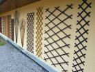Dřevěné ozdobné mříže jsou vysoce dekorativní prvky zahradní architektury. Používají se do pergol, jako opory ke květinám, ke stavbě plotů, nebo jako dekorace na zeď. Jsou vyrobené ze smrkového dřeva s důrazem na vysokou kvalitu zpracování. Standartně jsou mříže dodávány bez povrchové úpravy, v případě zájmu je možné mříže natřít libovolným ochranným nátěrem z naší nabídky.