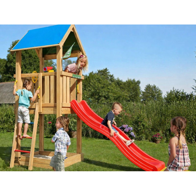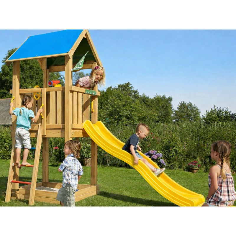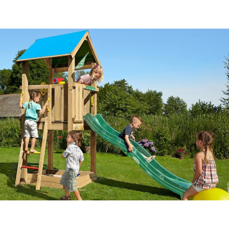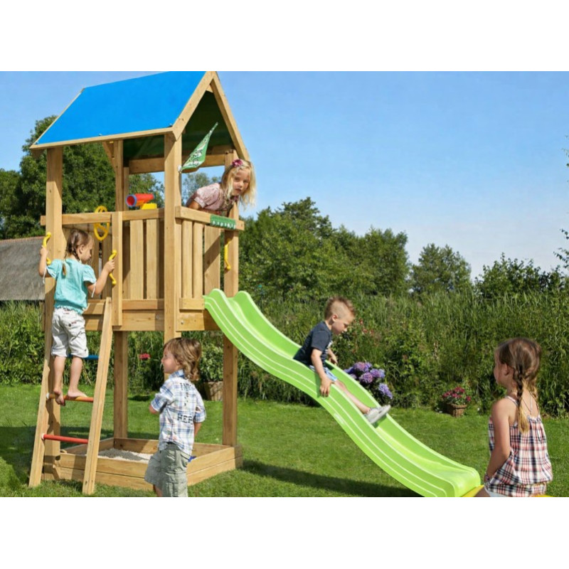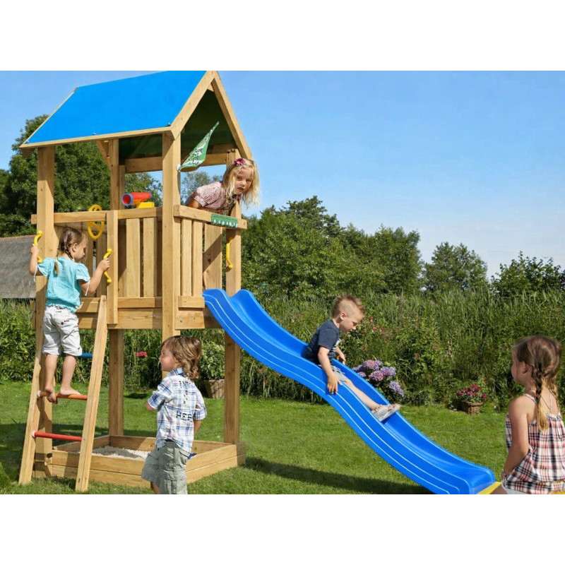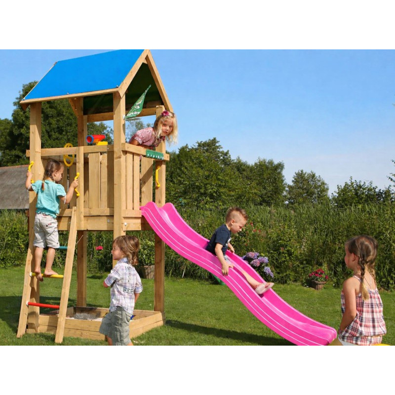 Jako každá hrací sestava této řady je Castle opatřen skluzavkou, u které je možno vybírat barvu. Barvu si prosím vyberte z nabídky. Na hřiště se připojuje skluzavka o délce 2,25 m s jednou vlnou pro co možná největší zábavu a její nástupní výška je 125 cm.