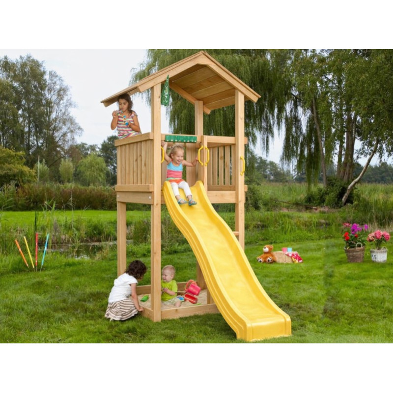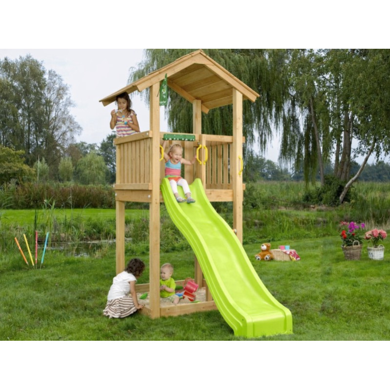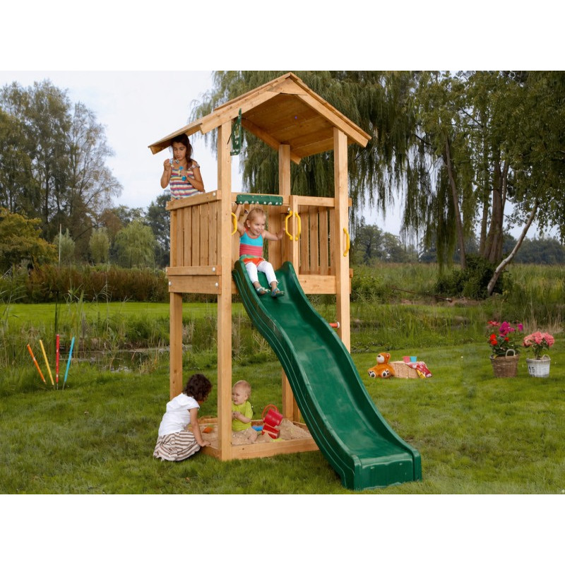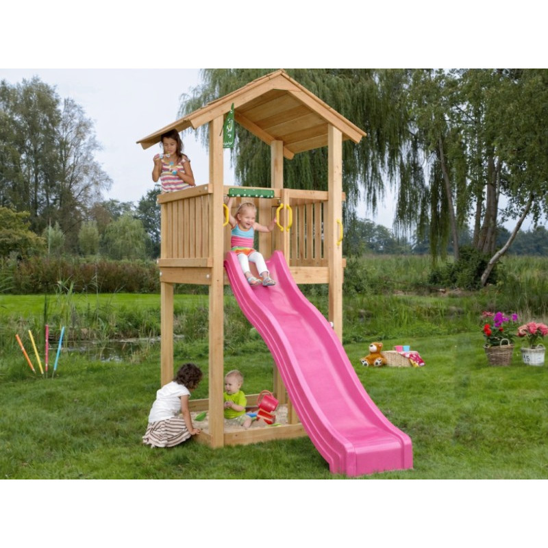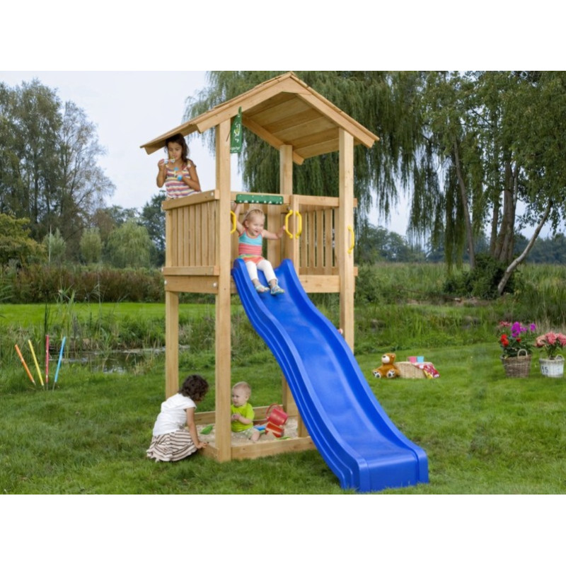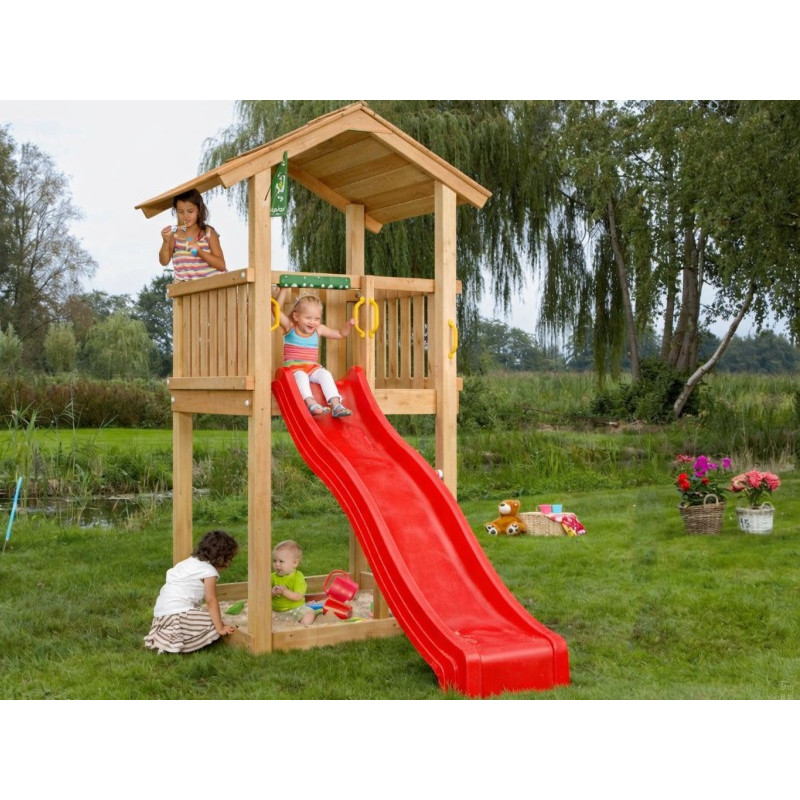 Jako každá hrací sestava této řady je Casa opatřen skluzavkou, u které je možno vybírat barvu. Barvu si prosím vyberte z nabídky. Na hřiště se připojuje skluzavka o délce 2,25 m s jednou vlnou pro co možná největší zábavu a její nástupní výška je 125 cm.