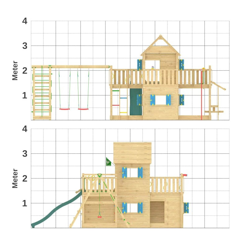 Každá herní sestava této řady je automaticky doplněna skluzavkou s možností připojení na hadici s vodou. Další možností je výběr barvy skluzavky. Barvu si prosím vyberte z nabídky. Na hřiště se připojuje skluzavka o délce 2,65 m s jednou vlnou pro co možná největší zábavu a její nástupní výška je 145 cm.