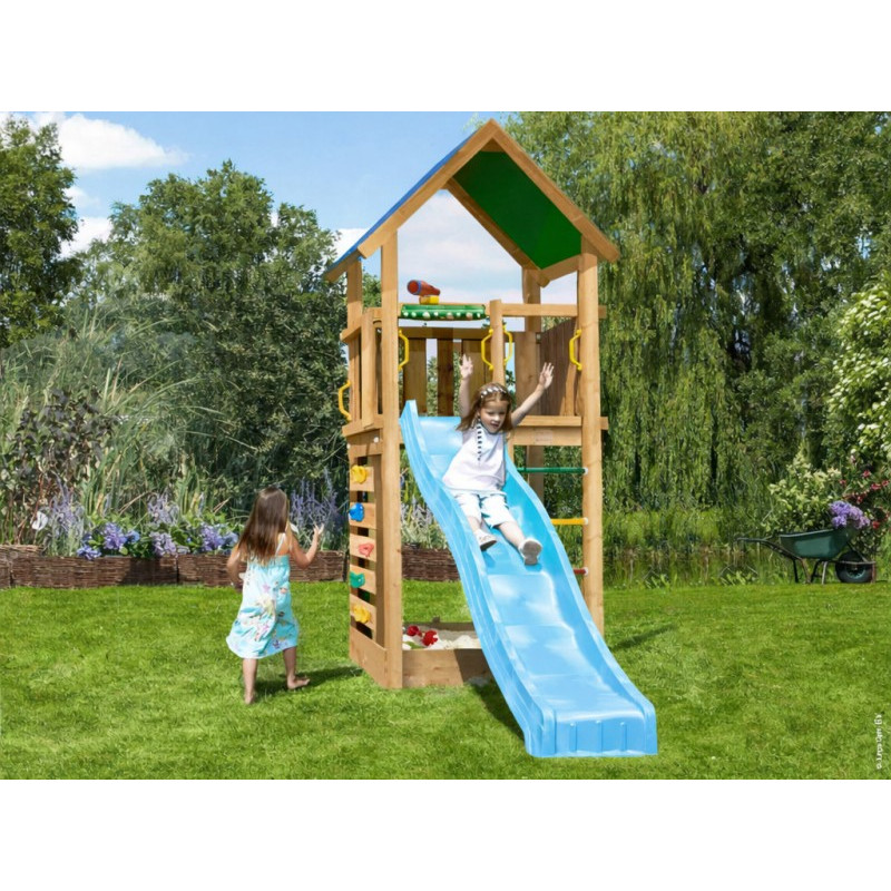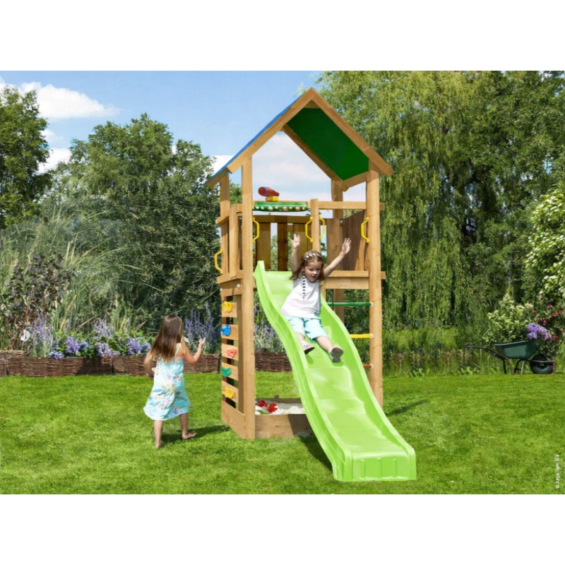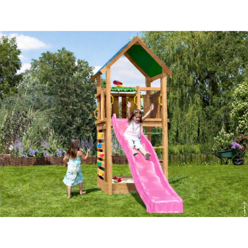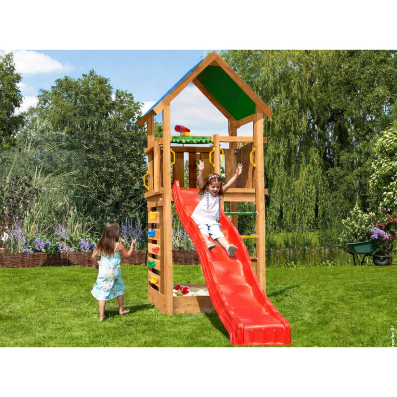 Jako každá hrací sestava této řady je Lodge opatřen skluzavkou, u které je možno vybírat barvu. Barvu si prosím vyberte z nabídky. Na hřiště se připojuje skluzavka o délce 2,65 m s jednou vlnou pro co možná největší zábavu a její nástupní výška je 145 cm.