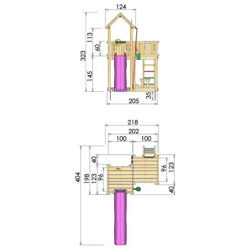 Jako každá hrací sestava této řady je Mansion opatřen skluzavkou, u které je možno vybírat barvu. Barvu si prosím vyberte z nabídky. Na hřiště se připojuje skluzavka o délce 2,65 m s jednou vlnou pro co možná největší zábavu a její nástupní výška je 145 cm.