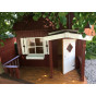 Domek Otto má klasickou sedlovou střechu se spádem pěkných 40° a tak se nemusíte bát, že by se na střeše držela voda, nebo že by ji v zimě prolomil těžký napadaný sníh. Střecha má plochu 7,1 m2 a je vyrobena z 1,6 cm silných palubek, které jsou do sebe zapasovány do předem vyfrézovaných žlábků, a tak máte jistotu, že střecha bude pevně držet pohromadě. Stejným způsobem jsou dělány i stěny domku. Tyto 1,6 cm silné palubky jsou do sebe pevně zasunuty a tak není ve stěně jediná mezera, kudy by dovnitř foukal vítr. Nebojte se však, že by děti uvnitř neměly dostatek čerstvého vzduchu. Ve štítu domu a ve dveřích jsou dostatečně velké otvory, aby se uvnitř dalo bezpečně dýchat. I ty jsou ale schované pod střechou, takže bude vše v suchu.