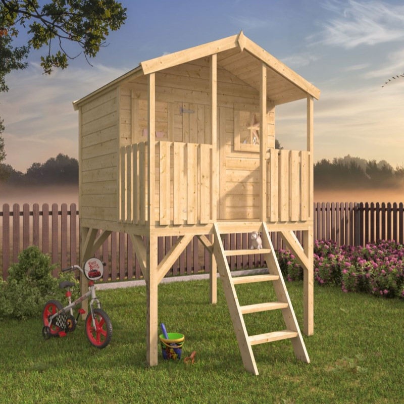 Chci individuální nabídkuDětský domek Peter Pan má vyvýšenou podestu se schůdky a sedlovou střechu s krytinou z černé lepenky. Díky přesahu střechy vznikla před dveřmi malá krytá veranda o rozměrech 60 x 180 cm. Dětský domek je vyroben ze smrkového dřeva a jeho stěny tvoří 16 mm silné palubovky bez povrchové úpravy. Na čelní straně domku jsou umístěny jednokřídlé celodřevěné dveře a dvě okna. Okna jsou zasklena plexisklem a tak nehrozí, že by se mohla rozbít a děti poranit. Součástí balení je i dřevěná podlaha a montážní sada. Domek má rozměry 180 x 120 centimetrů.