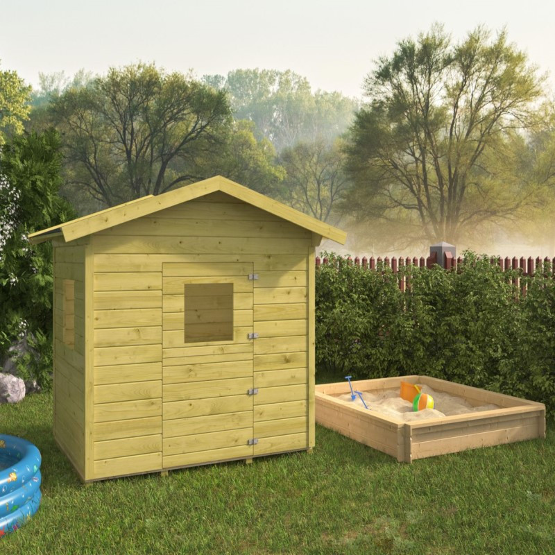 Chci individuální nabídkuBorovicové dřevo na zahradní domek Pippi pro děti bylo před započetím výroby důkladně vysušeno, ohoblováno a ošetřeno tlakovou impregnací, která dřevu dodá potřebné látky pro ochranu před škůdci, plísněmi, hnilobou, různými houbami a nepříznivými klimatickými vlivy. Domek má sedlovou střechu s mírným přesahem potaženou černou lepenkou (je v ceně základního produktu) a jedno okno zabudované v levé boční stěně. Dveře dětského domečku Pippi jsou v půlce horizontálně rozděleny na dvě části, přičemž každá z nich se dá otevřít zvlášť. V horní části dveří je zabudováno malé okénko. Obě okénka jsou zasklena plexisklem a tak nehrozí, že by se mohla rozbít a děti pořezat. Jeho stěny jsou tvořeny šestnáctimilimetrovými palubkami a dodáváme je již smontované, což výrazně ulehčí stavbu dětského domku svépomocí. Součástí balení je i dřevěná podlaha a montážní sada. Domek má rozměry 140 x 100 centimetrů.