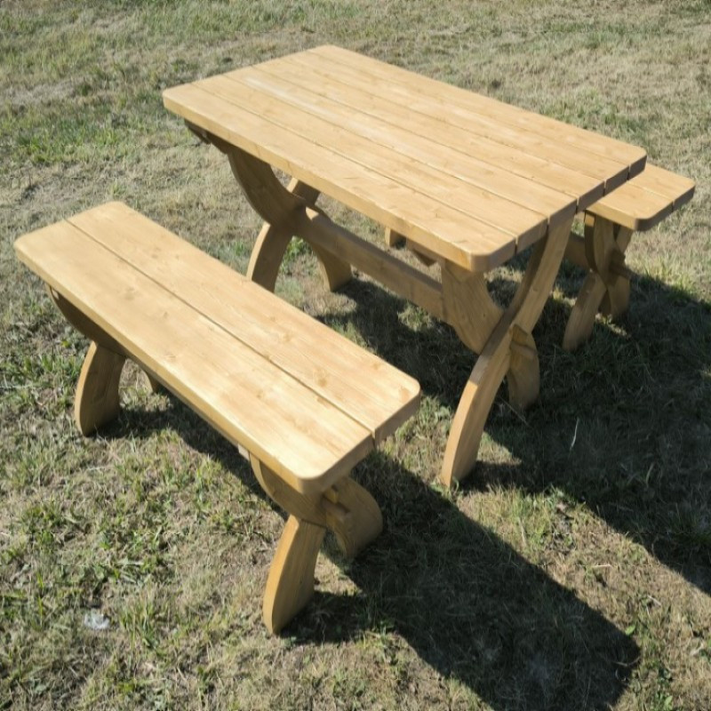 V základním provedení je lavice bez povrchové úpravy. Kompletní sestava Hospoda má velmi robustní vzhled. Masivní nábytek se svou robustností hodí na chaty, chalupy a do velkých zahrad.