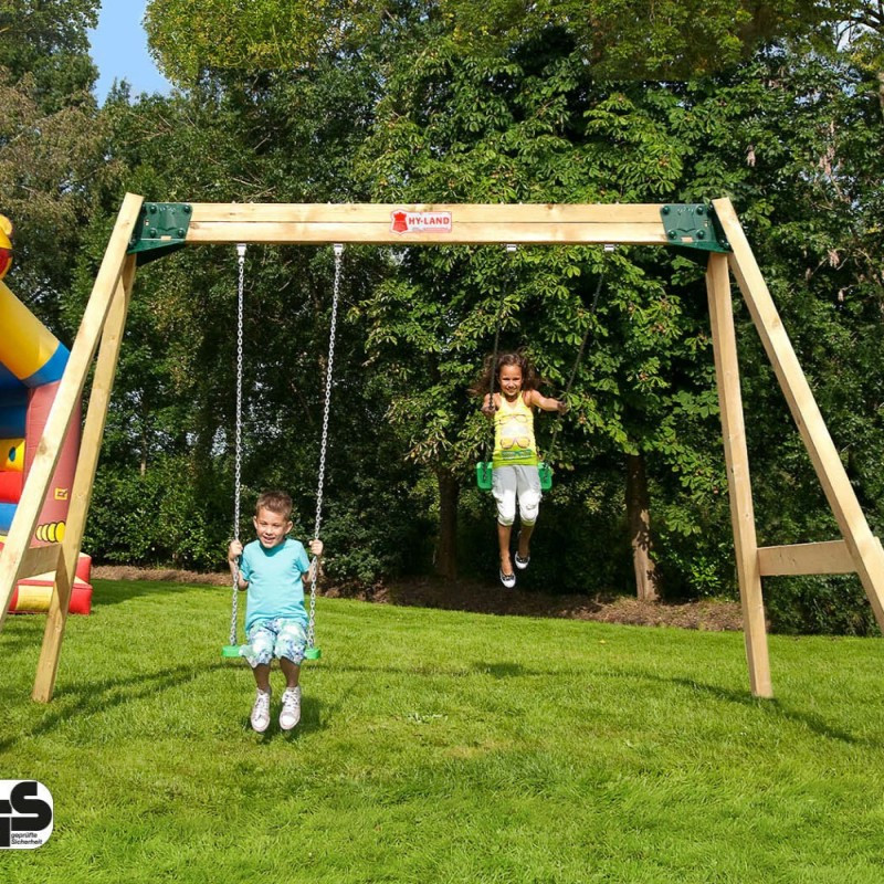 Klasická závěsná houpačka Hy-Land je klasickým herním prvkem, který se snad nikdy neokouká! Dvě houpačky jsou zavěšeny na masivním ráhně dlouhém asi 3, 5 metru, díky čemuž jsou houpačky v dostatečné vzdálenosti jedna od druhé, aby se děti při houpání nezranily. Houpačka je vyrobena z masivního smrkového dřeva, které je tlakově impregnováno, díky čemuž vydrží po několik generací.
