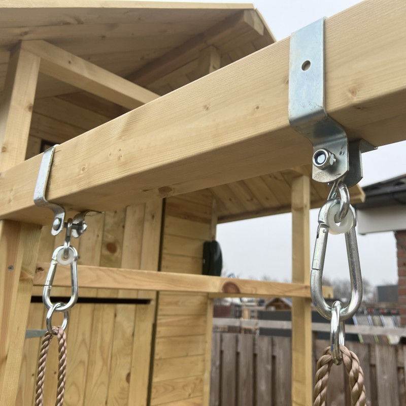 Houpačkový hák z galvanizované oceli o síle 3 mm je svým tvarem určen na čtvercový hranol 9x9cm