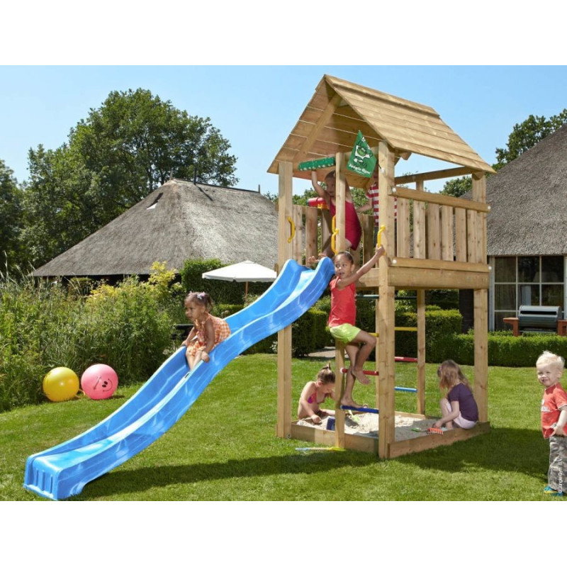 Jako každá hrací sestava této řady je Cabin opatřen skluzavkou, u které je možno vybírat barvu. Barvu si prosím vyberte z nabídky. Na hřiště se připojuje skluzavka o délce 265 cm s jednou vlnou pro co možná největší zábavu a její nástupní výška je 145 cm.