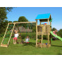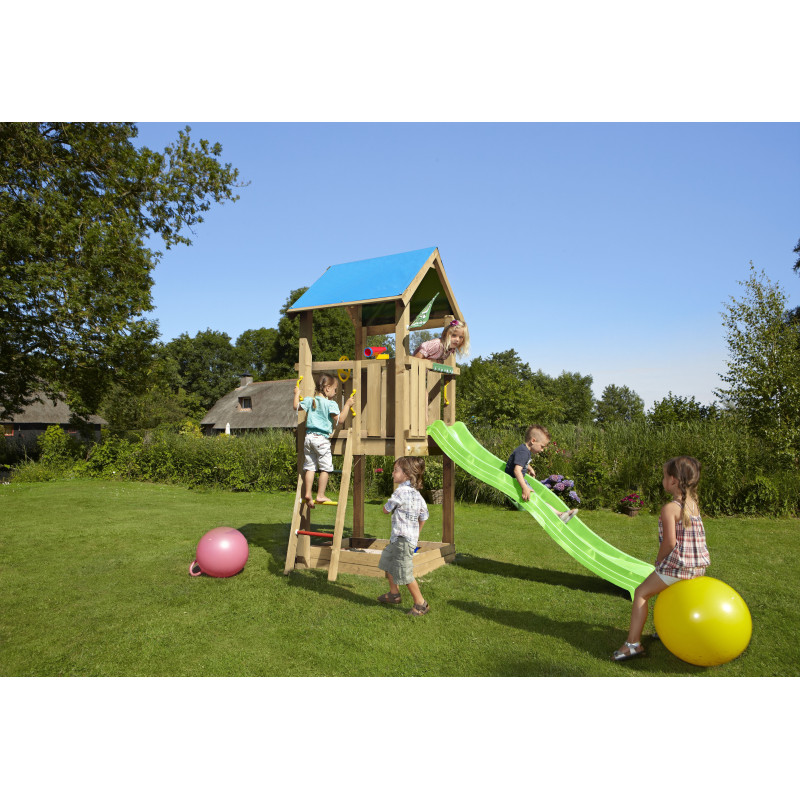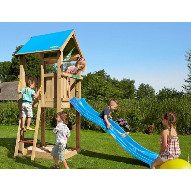 Chci individuální nabídkuDětské hřiště Castle vyrobené z impregnovaných hranolů 9 x 9 cm je jedno z menších hřišť, která holandský výrobce Jungle Gym nabízí. Jednoduchá hrací věž je opatřena plátěnou střechou "áčkového" typu, která je v modrém provedení. Dále je sestava doplněna o žebřík se stupínky a podestu, na níž je upevněna skluzavka.