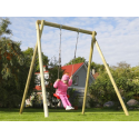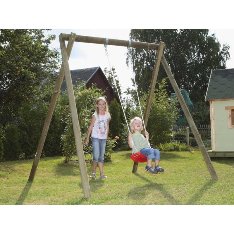 Dětská jednomístná houpačka Mel z tlakově impregnované kulatiny je základní jednoduchá houpačka z našeho sortimentu dětských houpaček. I na této houpačce si Vaše dítě užije spousty radosti. Zelená barva impregnace se postupem času ztratí a dřevo získá své typické šedé zabarvení.