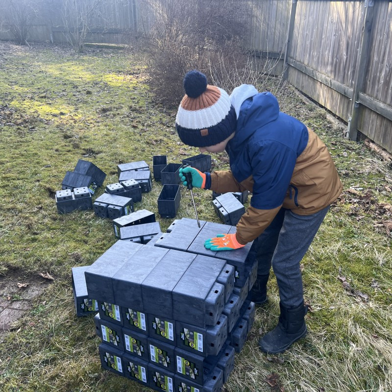 Doporučujeme dokoupit optimální počet kolíků pro stavbu na zemině, nebo optimální počet misek na zpevněném povrchu