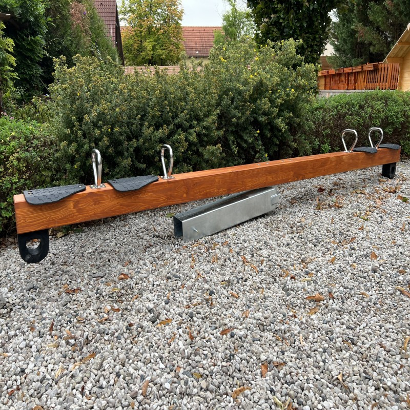 Čtyřmístná houpačka používaná pro veřejná dětská hřiště patří mezi nejoblíbenější prvky ve veřejných prostranství. Masivní vahadlová houpačka je vyrobena z hladce frézovaného dřeva a opatřená lazurovacím nátěrem v medovém odstínu. Rozměry kyvadlové houpačky jsou 400 x 14 cm a pádová výška je 100 cm. Potřebný bezpečnostní prostor je 300 x 700 cm.
