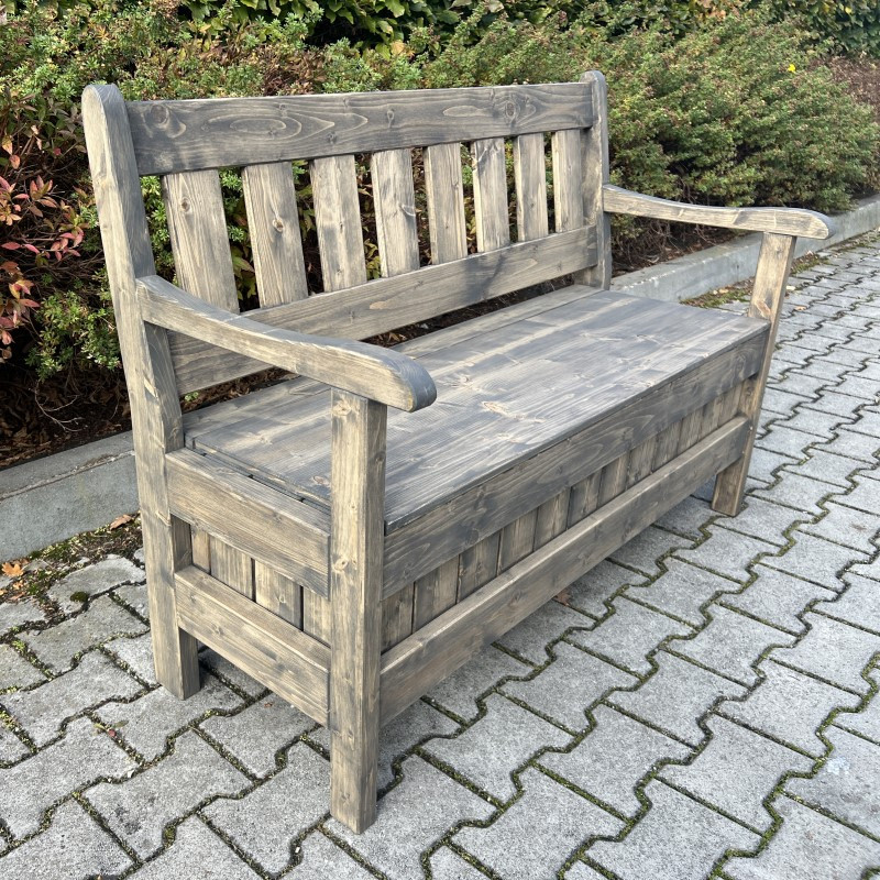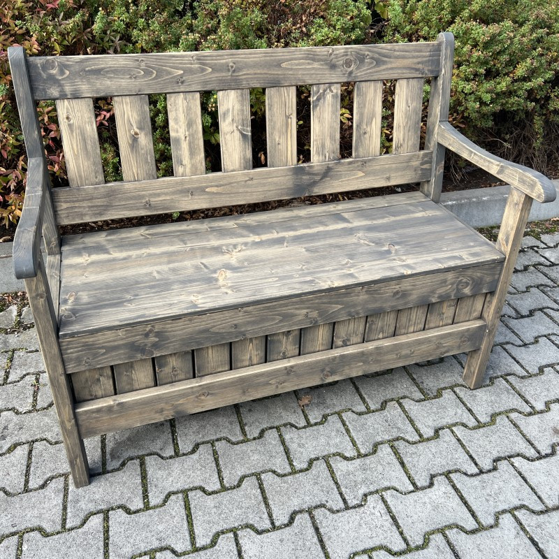 Na lavici je použito masivní smrkové dřevo o síle 4 cm na konstrukci a 2 cm na výplních úložného prostoru a opěradla.