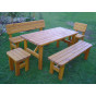 Stůl Malorka je též součástí celé sady zahradního dřevěného nábytku. Je možné jej doplnit lavicemi a židlemi s opěradlem. Na vyžádání lze dodat i lavice bez opěradla a stoličky.