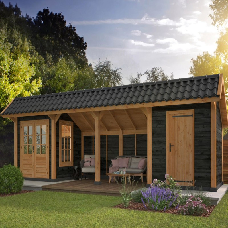 Všechna příslušenství jsou dostupná jak v přírodní barvě modřínu, tak i ve stylové černé impregnaci. Okna a dveře jsou standardně dodávána smrková bez povrchové úpravy.