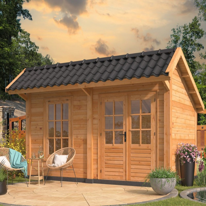 Všechna příslušenství jsou dostupná jak v přírodní barvě modřínu, tak i ve stylové černé impregnaci. Okna a dveře jsou standardně dodávána smrková bez povrchové úpravy.