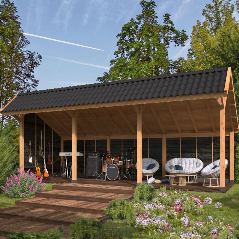 Přístřešek Bergen 6 XL je delší verzí základního stavebního kamene stavebnicových zahradních přístřešků s nesymetrickou sedlovou střechou Bergen. Vnější rozměry přístřešku jsou 989 x 452 cm. Vnitřní prostor přístřešku je vytyčen sloupy z modřínu o čtvercovém průřezu 14,5 x 14,5 cm a má rozměry 952 x 327 cm. Na střechu jsou použity rýgle o průřezu 14,5 x 4,5 cm, které jsou dostatečně pevné i pro těžší střešní krytiny. Model Bergen 6 L má ze dvou stran stěnu, která Vás i Vaše hosty spolehlivě ochrání před větrem i deštěm.