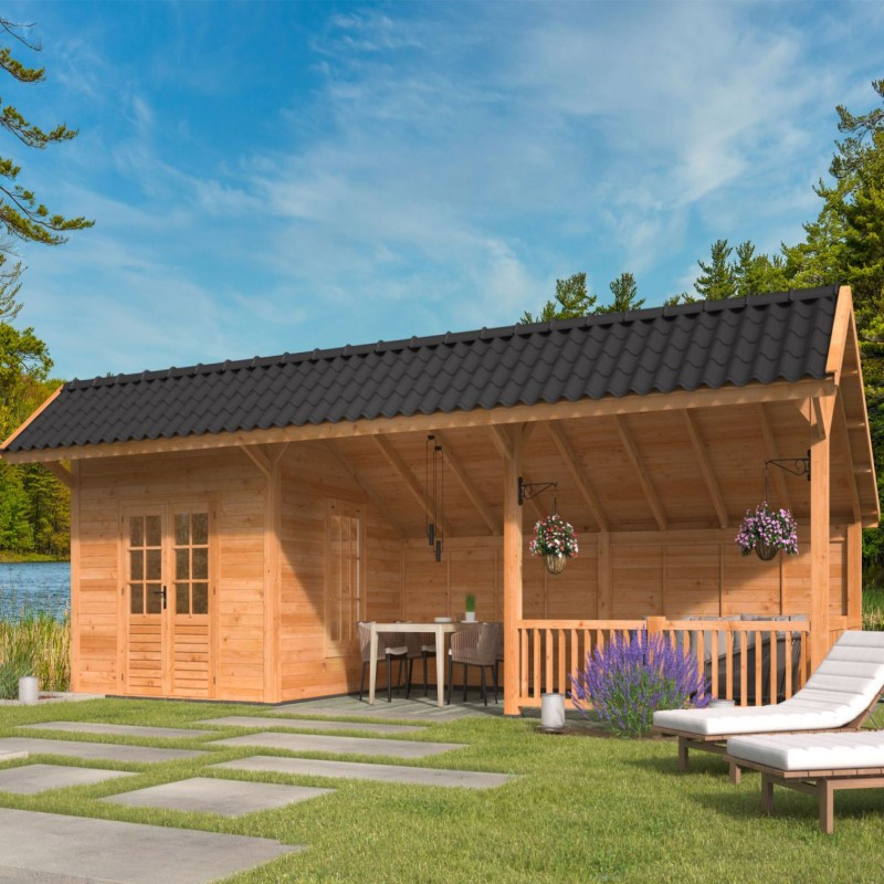 Všechna příslušenství jsou dostupná jak v přírodní barvě modřínu, tak i ve stylové černé impregnaci. Okna a dveře jsou standardně dodávána smrková bez povrchové úpravy.