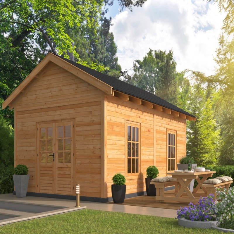 Přístřešek Hamar 4 XL je jedním z typů stavebnicových zahradních přístřešků se sedlovou střechou. Model Hamar 4 je tvořen základní sestavou přístřešku Hamar, ale zároveň jsou k němu přistavěny stěny ze všech stran, takže z něj vznikne krásná zahradní chata. Do místnosti se vchází dvoukřídlými dveřmi, které jsou prosklené a společně se dvěma okny vpravo tak vpouští dovnitř dostatek světla. Dveře a okna jsou z neimpregnovaného smrku a skla jsou vyztužena dřevěnými latěmi. Vnější rozměry přístřešku jsou 678 x 445 cm. Vnitřní prostor přístřešku je vytyčen sloupy z modřínu o čtvercovém průřezu 14,5 x 14,5 cm a má rozměry 640 x 377 cm. Na střechu jsou použity rýgle o průřezu 14,5 x 4,5 cm, které jsou dostatečně pevné i pro těžší střešní krytiny. Zahradní altán je standardně dodáván bez střešní krytiny. Důvodem je fakt, že každý zákazník má jiné preference, ať už co se týče materiálu střešní krytiny, tak i barvy a dalších parametrů.