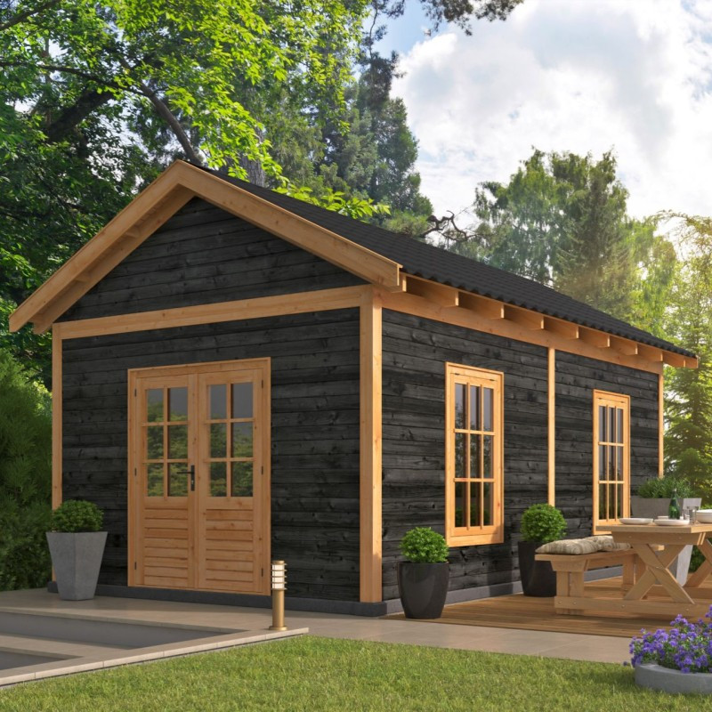 Všechna příslušenství jsou dostupná jak v přírodní barvě modřínu, tak i ve stylové černé impregnaci. Okna a dveře jsou standardně dodávána smrková bez povrchové úpravy.