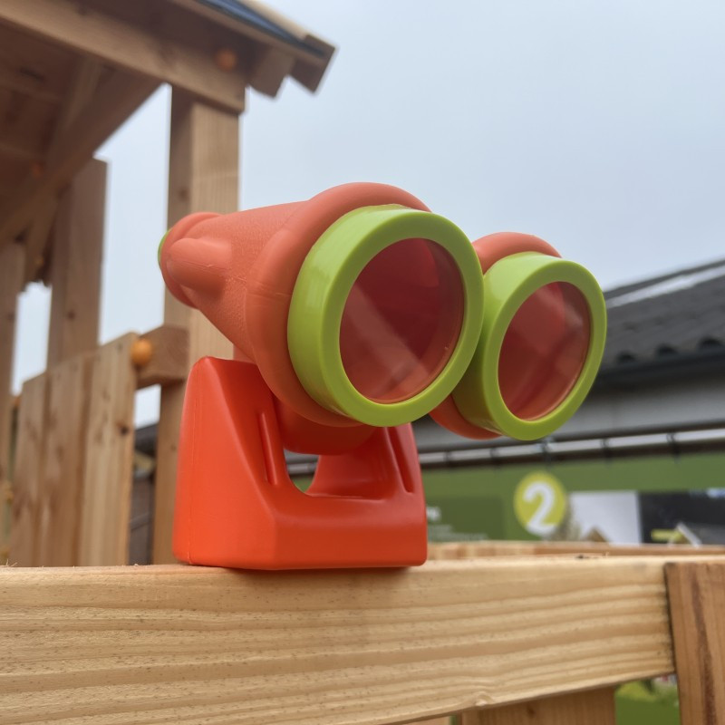 Dětský oranžovo limetkový dalekohled v obří velikosti je vyroben z odolného a stálobarevného plastu. Dalekohled je otočný do všech stran a je vybaven nezvětšovacími skly.