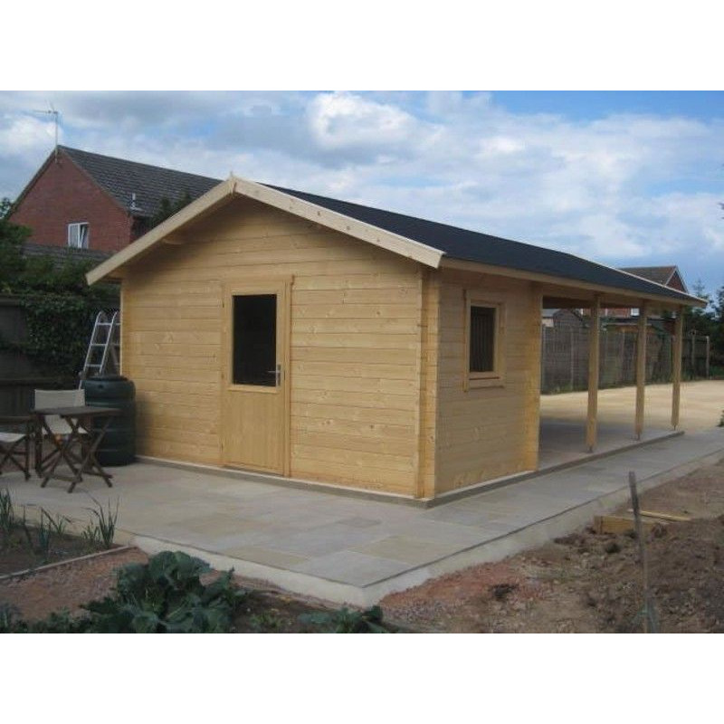 Chci individuální nabídkuDřevěná garáž s přístřeškem Ever se skládá z přístřešku na zaparkování auta, na který je napojen domek na ukládání nářadí. Přístřešek je 430 cm široký a 551 cm dlouhý a domek má rozměry 430 x 199 cm. Domek je opatřen prosklenými jednokřídlými dveřmi s rozměry 90 x 190 cm s klikou a zámkem. Na boční straně domku je umístěno okno s rozměry 70 x 90 cm vysklené jednovrstvým sklem silným 4 mm, které je vyztužené dřevěnými latěmi a je otevíratelné.