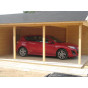 Na konstrukci dřevěné garáže je použit dokonale vysušený severský smrk. Jednotlivá prkna, palubky a sloupky jsou přesně nakrácené na požadovanou délku a dohladka ohoblované. Síla prken dřevěné garáže je 44 mm. Spoje v rozích garáže jsou řešeny spolehlivými zámky, které do sebe přesně zapadají a tvoří pevný, ale rozebíratelný spoj. Dřevo není ošetřeno žádnou impregnací ani nátěrem, je ale možné za příplatek nátěr provést v naší lakovně spolehlivými lazurami na dřevo Xyladecor.