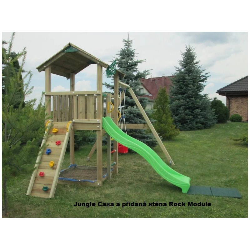 Velkou výhodou tohoto doplňku je, že ať jste se rozhodli pro jakýkoliv typ dětského hřiště Jungle Gym, připevníte šplhací stěnu bez problému na každý z nich. Některé dětská hřiště již šplhací stěnu obsahují v základní výbavě. Přídavná šplhací stěna Rock modul je tedy vhodná pro rozšíření dětského hřiště, které šplhací stěnu s kameny neobsahuje.