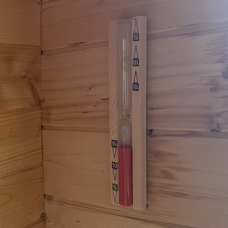 Přesýpací hodiny vám pomohou hlídat doporučenou délku pobytu v sauně a zajistit tak bezpečný a efektivní saunovací cyklus
