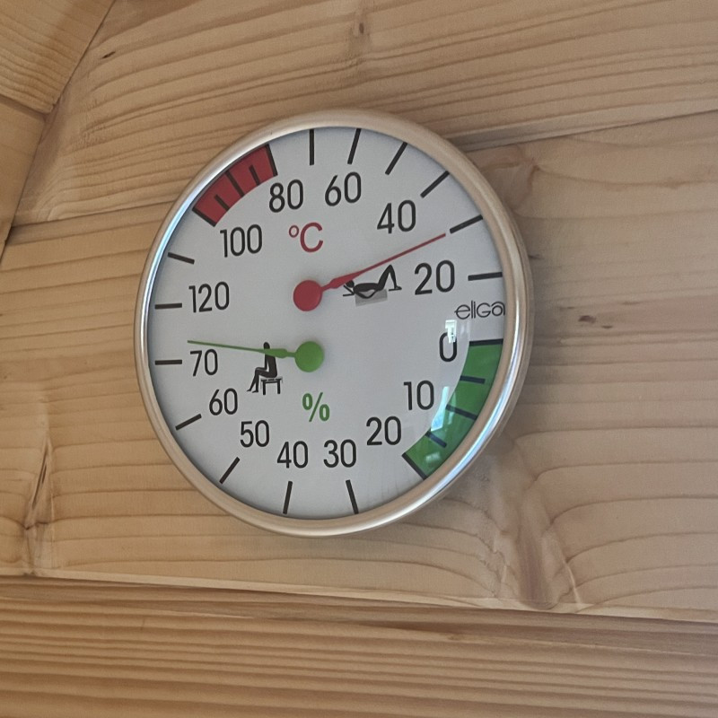 Teploměr umožňuje mít přehled o aktuální teplotě v sauně a udržovat ideální podmínky pro relaxaci