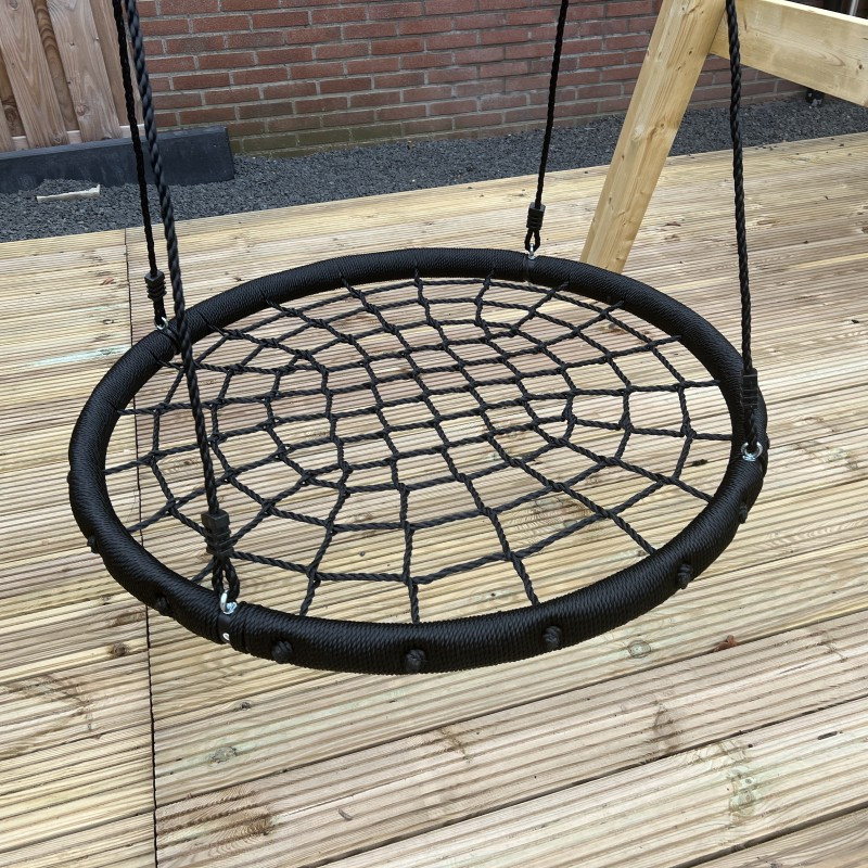 Houpačkové sedátko ve tvaru ptačího hnízda je snem každého dítěte. Je vyrobeno z pevných pletených lan modré barvy. Hnízdo je okolo vyztuženo speciální černou pevnou obručí, aby dokonale drželo tvar a bylo pro děti bezpečné. Houpací sedátko má průměr 100 cm a můžou se v něm houpat i dvě děti najednou. Je vhodné pro všechny dětská hřiště z naší nabídky.
