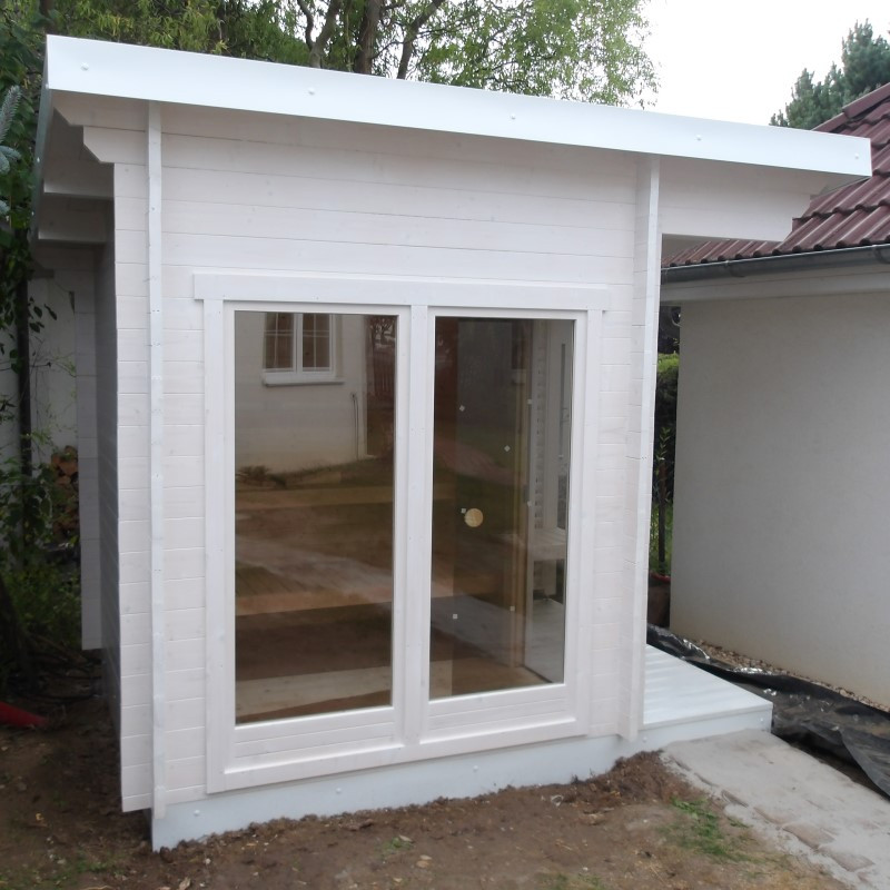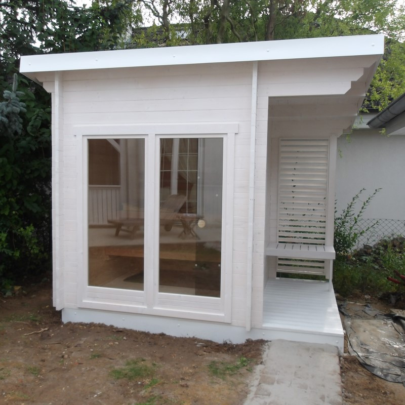 Venkovní sauna s boční vchodem a krytou terasou je vyrobena z hoblovaného smrkového dřeva. Sauna je skvělý způsob, jak si užít relaxaci a očistu těla ve spojení s přírodou. Rozměr sauny je 208 x 290 cm a tloušťka stěny 40 mm. Výška hřebene sauny je 260 cm.