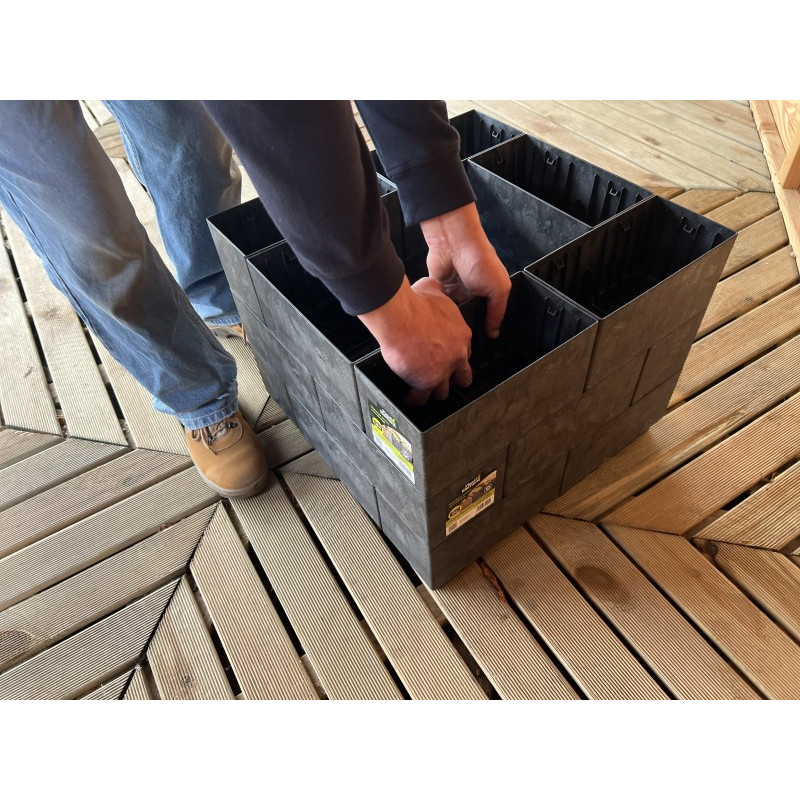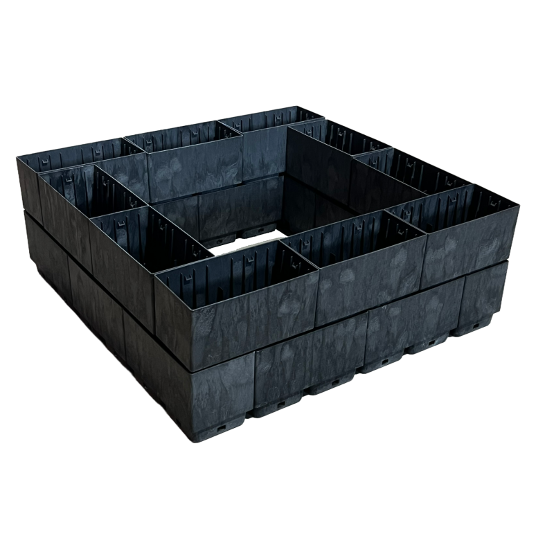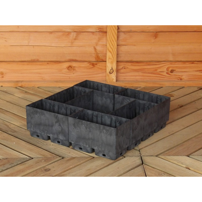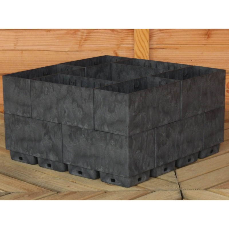 Sestava 20 kusů plastových truhlíků Flexi Element složených do čtverce o rozměrech 75 x 75 cm, výška 27 cm