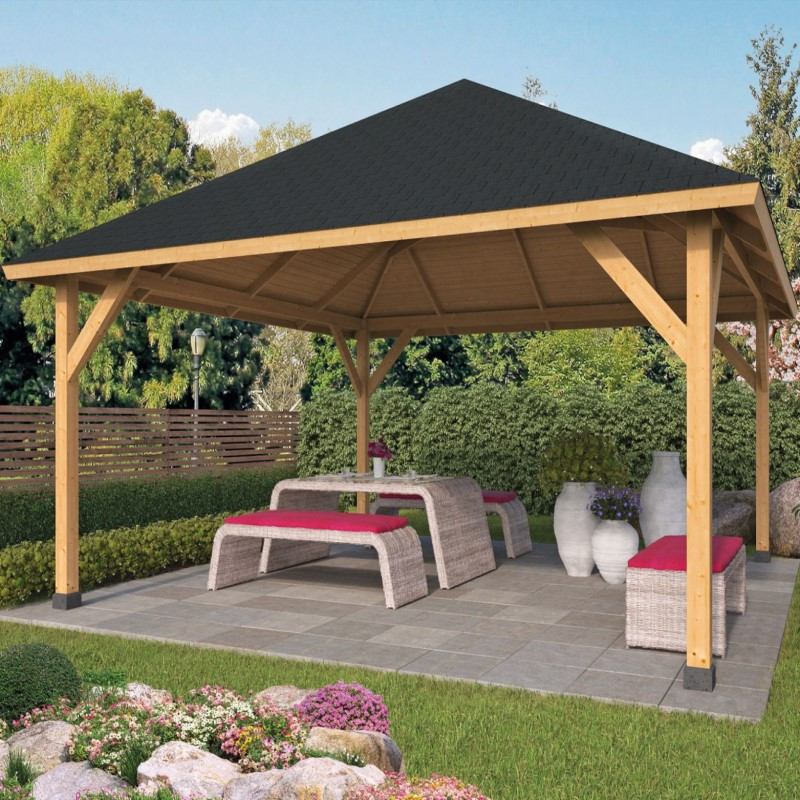 Zahradní altán je standardně dodáván bez střešní krytiny. Důvodem je fakt, že každý zákazník má jiné preference, ať už co se týče materiálu střešní krytiny, tak i barvy a dalších parametrů. Neváhejte nás kontaktovat, ať už pomocí kontaktního formuláře nebo rovnou telefonicky, popřípadě e-mailem a my se Vám ozveme a možnosti vylepšení altánu s Vámi podrobně probere jeden z našich technických poradců.