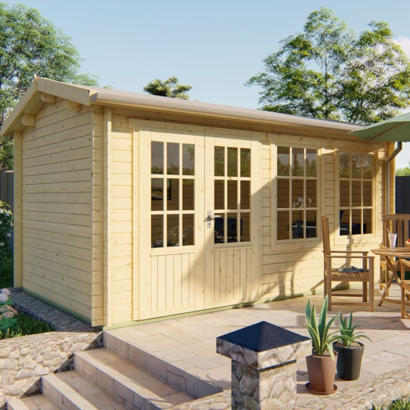 K výrobě dřevěné chaty je použit severský smrk. Dřevo je dohladka ohoblováno a dokonale vysušeno, aby po sestavení nedocházelo k jeho kroucení a ohýbání. Stěny se skládají z jednotlivých prken o síle 40 mm, které do sebe mají v přesně daných vzdálenostech vyřezané zámky. Tyto zámky do sebe perfektně zapadnou, stavba je tak velice rychlá a bezproblémová. Montáž střechy probíhá obdobně, zámky jsou do střešních palubek vyfrézovány po celé délce, palubky pak do sebe jednoduše zasouváte a postupně zajišťujete spojovacím materiálem.