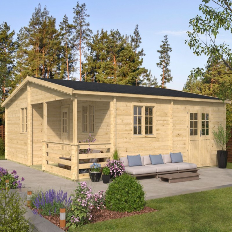 K výrobě dřevěné chaty je použit severský smrk. Dřevo je dohladka ohoblováno a dokonale vysušeno, aby po sestavení nedocházelo k jeho kroucení a ohýbání. Stěny se skládají z jednotlivých prken tlustých 70 mm, které do sebe mají v přesně daných vzdálenostech vyříznuté zámky. Tyto zámky do sebe perfektně zapadnou, stavba je tak velice rychlá a bezproblémová. Montáž střechy probíhá obdobně, zámky jsou do střešních palubek vyfrézovány po celé délce, palubky pak do sebe jednoduše zasouváte a postupně zajišťujete spojovacím materiálem.