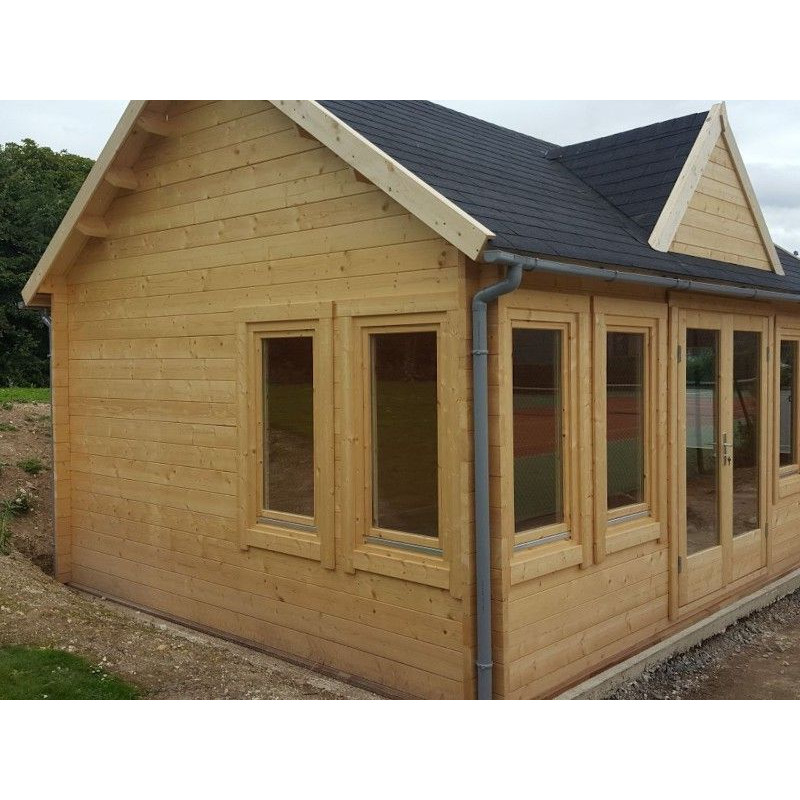 K výrobě dřevěné chaty je použit severský smrk. Dřevo je dohladka ohoblováno a dokonale vysušeno, aby po sestavení nedocházelo k jeho kroucení a ohýbání. Stěny se skládají z jednotlivých prken silných 44mm, které do sebe mají v přesně daných vzdálenostech vyříznuté zámky. Tyto zámky do sebe perfektně zapadnou, stavba je tak velice rychlá a bezproblémová. Montáž střechy probíhá obdobně, zámky jsou do střešních palubek vyfrézovány po celé délce, palubky pak do sebe jednoduše zasouváte a postupně zajišťujete spojovacím materiálem.