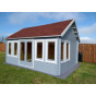 Chci individuální nabídkuZahradní chata Clockhouse je prostorná zahradní chata o vnějších rozměrech 550 x 400 cm. Její užitná plocha je 20,1 m2 a rozměry základů jsou 530 x 380 cm. Chata má klasickou sedlovou střechu a prosklené, dvoukřídlé vstupní dveře široké 156 cm a vysoké 196 cm. Nejvyšší bod chaty je od země ve výšce 351 cm, díky čemuž je uvnitř opravdu prostorná. Na každé straně vedle dveří jsou dvě okna a z každého boku další dvě. Každé okno má rozměry 69 x 128 cm a je zaskleno dvojvrstvým izolačním sklem o síle 3 - 6 - 3 mm (sklo - vzduch - sklo). Všechna okna jsou vyztužena dřevěnými latěmi a jsou otevíratelná.