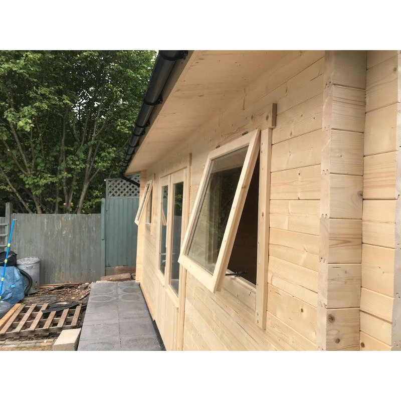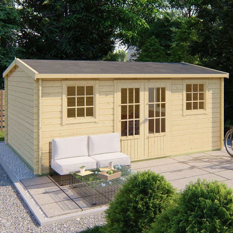 Chci individuální nabídkuZahradní chata Dianne je větší chata o vnějších rozměrech 578 x 450 cm. Její užitná plocha je 23,2 m2 a rozměry základů jsou 558 x 430 cm. Chata má klasickou sedlovou střechu s malým přesahem. Dveře jsou široké 161 cm a jejich výška je 188 cm. Nejvyšší bod chaty je od země ve výšce 251 cm. Na každé straně vedle dveří je po jednom oknu. Každé okno má rozměry 78 x 80 cm a je zaskleno izolačním dvojsklem (3 - 6 -3 mm). Okna jsou vyztužena dřevěnými latěmi a jsou otevíratelná.
