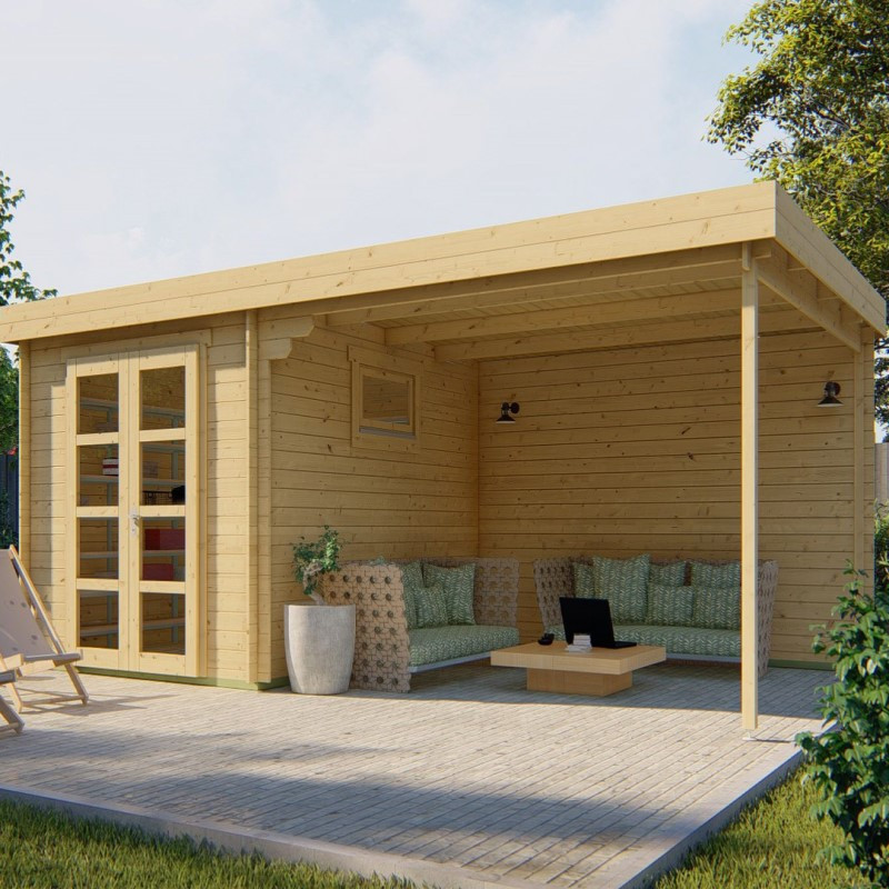 Chci individuální nabídkuZahradní chata Diederick je menší chatka s velkým přístřeškem o vnějších rozměrech 625 x 375 cm. Její užitná plocha je 8,7 m2 + 12,5 m2 přístřešek. Rozměry základů jsou 615 x 355 cm. Chata má plochou střechu, která přesahuje do boku o 360 cm. Dveře jsou dvoukřídlé široké 143 cm a jejich výška je 199 cm. Nejvyšší bod chaty je od země ve výšce 234 cm. Na boční straně je po jedno okno. Které má rozměry 92 x 46 cm a je zaskleno 4 mm silným jednovrstvým sklem.