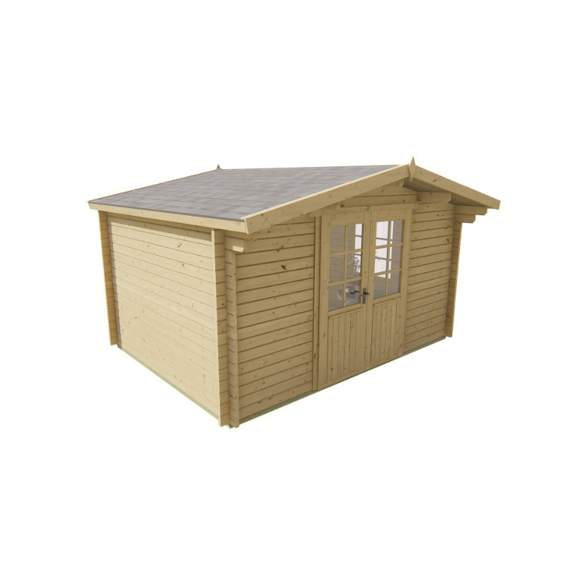 K výrobě dřevěné chaty je použit severský smrk. Dřevo je dohladka ohoblováno a dokonale vysušeno, aby po sestavení nedocházelo k jeho kroucení a ohýbání. Stěny se skládají z jednotlivých prken o síle 40 mm, které do sebe mají v přesně daných vzdálenostech vyřezané zámky. Tyto zámky do sebe perfektně zapadnou, stavba je tak velice rychlá a bezproblémová. Montáž střechy probíhá obdobně, zámky jsou do střešních palubek vyfrézovány po celé délce, palubky pak do sebe jednoduše zasouváte a postupně zajišťujete spojovacím materiálem.