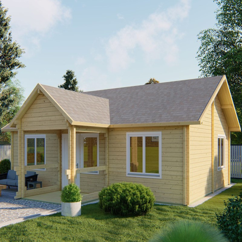 Chci individuální nabídkuZahradní chata Finn je moderní chata o vnějších rozměrech 1040 x 978 cm. Může sloužit jako víkendová nebo letní chata, zároveň i jako váš obytný dům a to především díky jejím rozměrům a praktickému rozdělení vnitřního prostoru do 6 místností. Její užitná plocha uvnitř je 71,8 m2 s verandou o ploše 6,2 m2. Rozměry základů jsou 1020 x 720 + 228 cm. Chata má klasickou sedlovou střechu, která kryje i již zmíněnou verandu.