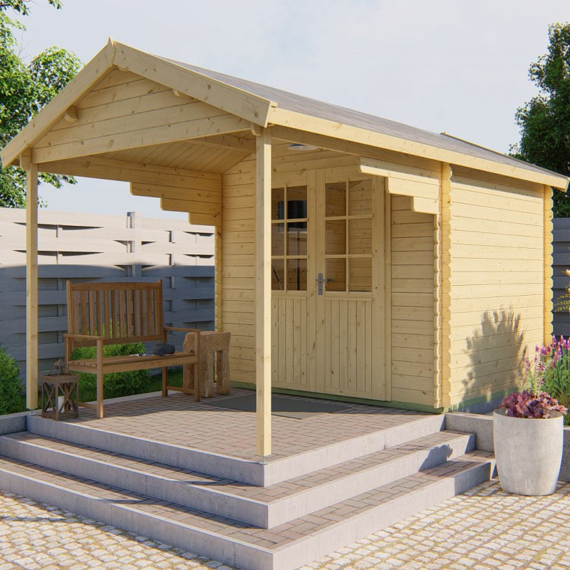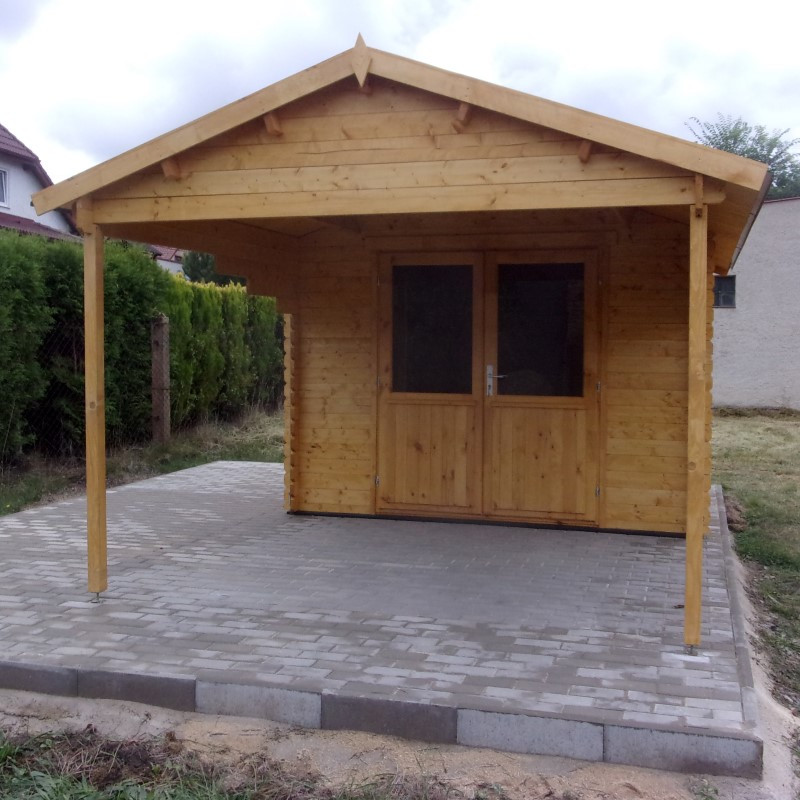 Chci individuální nabídkuZahradní domek Georg je velký zahradní domek s terasou a užitnou plochou 6,8 m2. Vnější rozměry domku jsou 300 x 520 cm, rozměry základů domku jsou pak 282 x 242 cm. Výška domku v hřebenu je 250 cm. Domek je vybaven dvoukřídlými dveřmi se skleněnou výplní a klasickou klikou se spolehlivým zámkem. Výplň dveří je z jednovrstvého skla o tloušťce 4 mm. Šířka dveří je 161 cm a jejich výška 192 cm. Střecha domku je klasická sedlová a její celková plocha činí 18 m2. Střecha má velký přesah před vchodové dveře 260 cm, je podepřená dvěma stojkami a tvoří tak praktickou terasu.