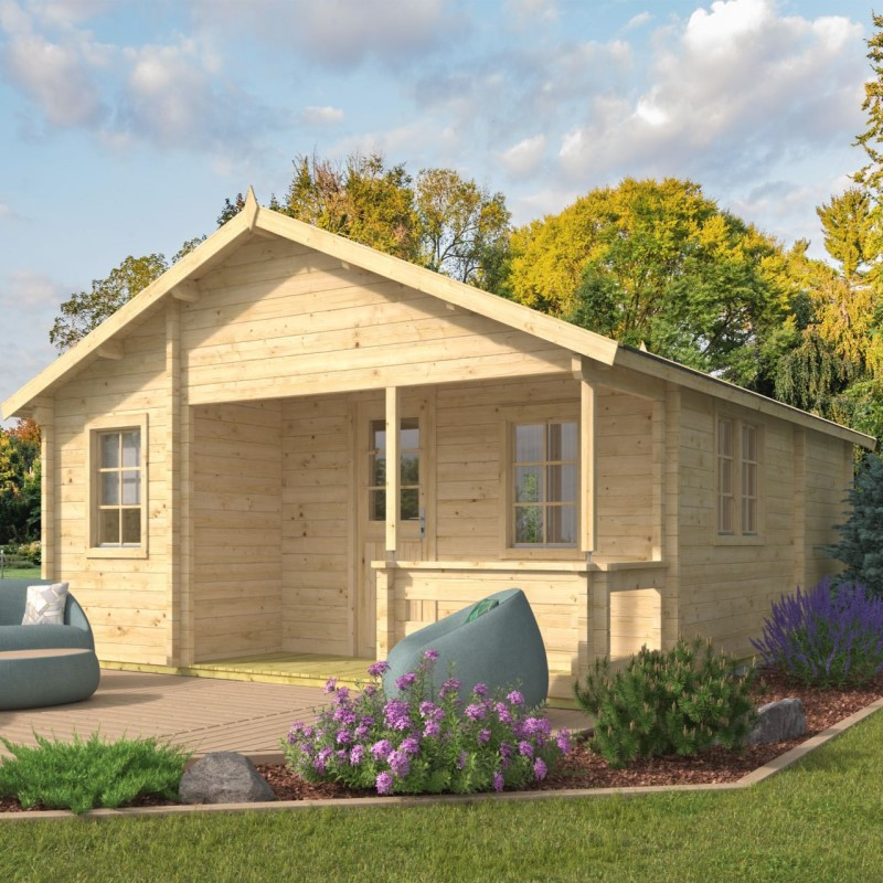 K výrobě dřevěné chaty je použit severský smrk. Dřevo je dohladka ohoblováno a dokonale vysušeno, aby po sestavení nedocházelo k jeho kroucení a ohýbání. Stěny se skládají z jednotlivých prken silných 70 mm, které do sebe mají v přesně daných vzdálenostech vyříznuté zámky. Tyto zámky do sebe perfektně zapadnou, stavba je tak velice rychlá a bezproblémová. Montáž střechy probíhá obdobně, zámky jsou do střešních palubek vyfrézovány po celé délce, palubky pak do sebe jednoduše zasouváte a postupně zajišťujete spojovacím materiálem.