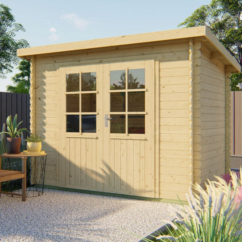 Chci individuální nabídkuZahradní domek Kris je menší zahradní domek s užitnou plochou 4,8 m2. Vnější rozměry domku jsou 290 x 200 cm, rozměry základů domku jsou pak 270 x 180 cm. Výška domku v hřebenu je 219 cm. Domek je vybaven dvoukřídlými dveřmi se skleněnou výplní a klasickou klikou se spolehlivým zámkem. Výplň dveří je z jednovrstvého skla o tloušťce 4 mm. Šířka dveří je 162 cm a jejich výška 188 cm. Střecha domku je šikmá pultová a její celková plocha činí 7 m2.
