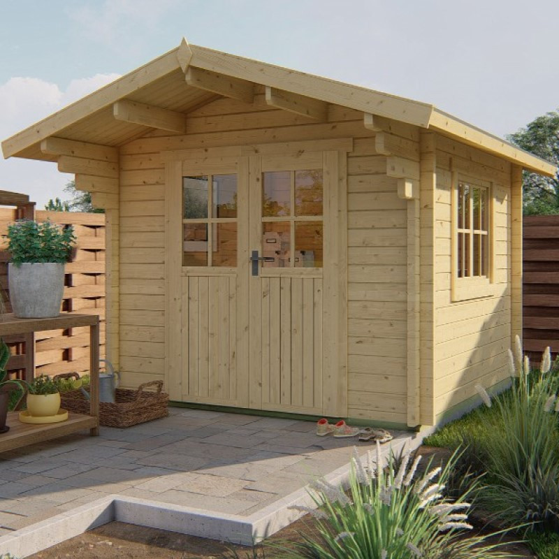 Na výrobu zahradního domku Lennart je použito dohladka ohoblované, 58 mm silné smrkové dřevo. Stavba domku je velice snadná - celé stěny se montují z jednotlivých prken, do kterých jsou vyřezány zámky. Zámky do sebe perfektně zapadají a stěny jsou smontovány za chvíli. Při stavbě střechy rovněž nenarazíte na žádné problémy, opět se jedná jen o jednoduché zapasování jednotlivých střešních palubek do připravených zámků.