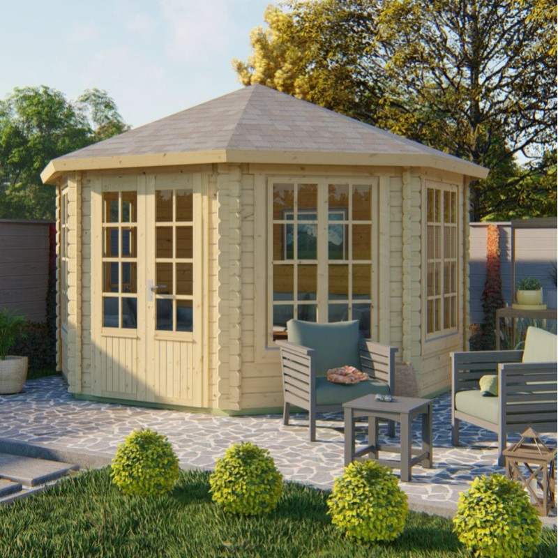 Chci individuální nabídkuZahradní altán Lynn je velký zahradní altán s užitnou plochou 13,4 m2. Vnější rozměry altánu jsou 378 x 378 cm, průměr altánu je 418 cm, základ altánu je osmibokký o straně 193 cm. Altán má ve špičce výšku 306 cm. Altán má tři stěny plné, které chrání osazenstvo altánu před nepříjemným větrem. Vstup je v jedné ze stran altánu, vedle vstupu jsou 4 stěny osazené okny o rozměru 110 x147 cm, která jsou otevíratelná.